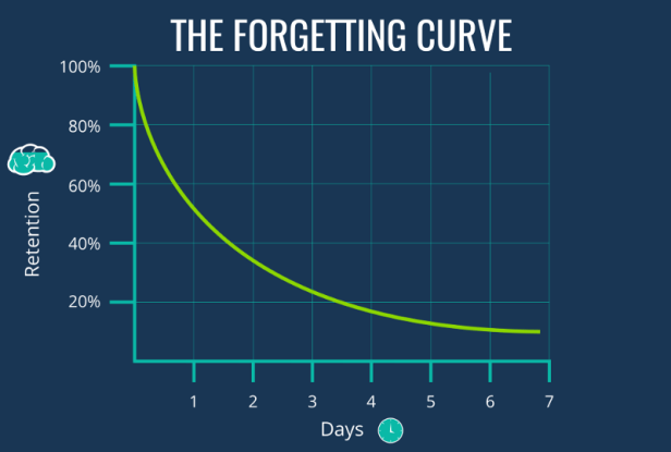 In Dr. Carmen Simon’s book Impossible to Ignore, she discusses many ideas concerning memory and messaging. One in particular is the “forgetting curve.”