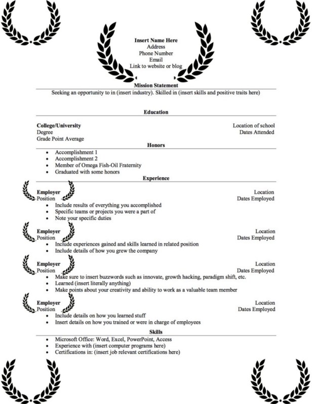 With that all said, what is more classic than Roman-style laurel wreaths?! Use laurel wreaths to accent all of the main points within your résumé.